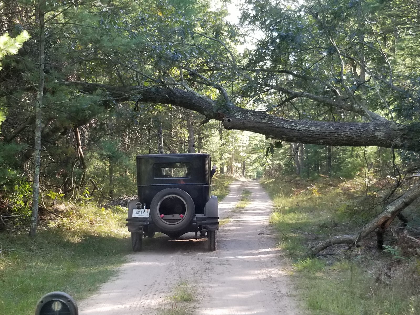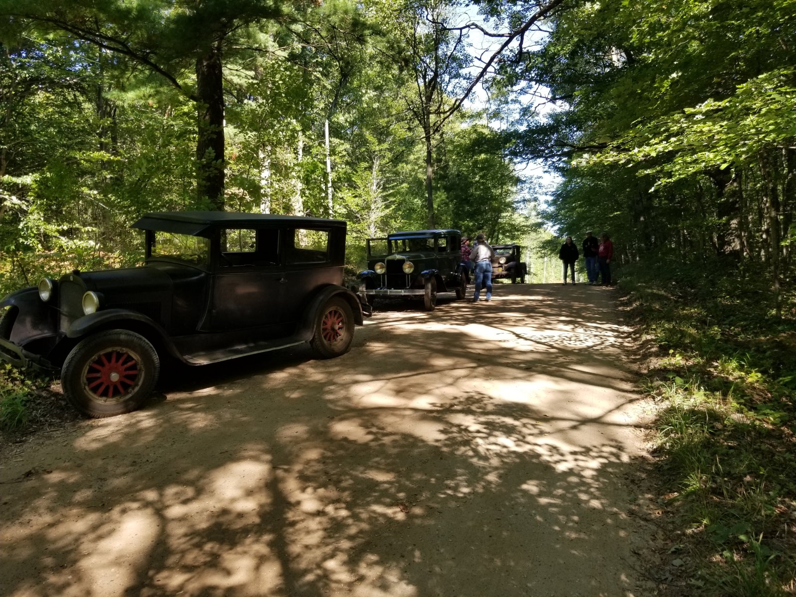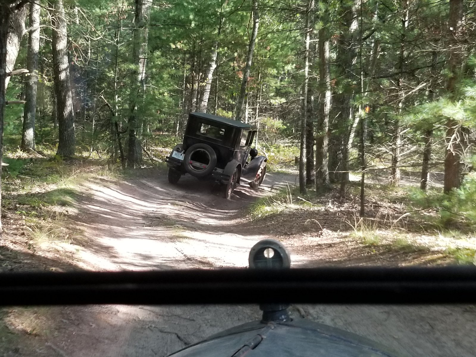 A bunch of my buddys and our wives went to Silverlake Michigan this weekend to drive the back roads. My little T sucked up every tree root, rock and sand pit we could find. Pretty good company with a 29 Durant, 31 Grahm Paige, 25 Dodge Brothers, 28 Dodge Brothers, 29 Chevy and my 26 pickup. The T performed like it was made for these roads, which it was. I could feel the body flex and was told the rear wheel was off the ground climbing over some of the terrane.