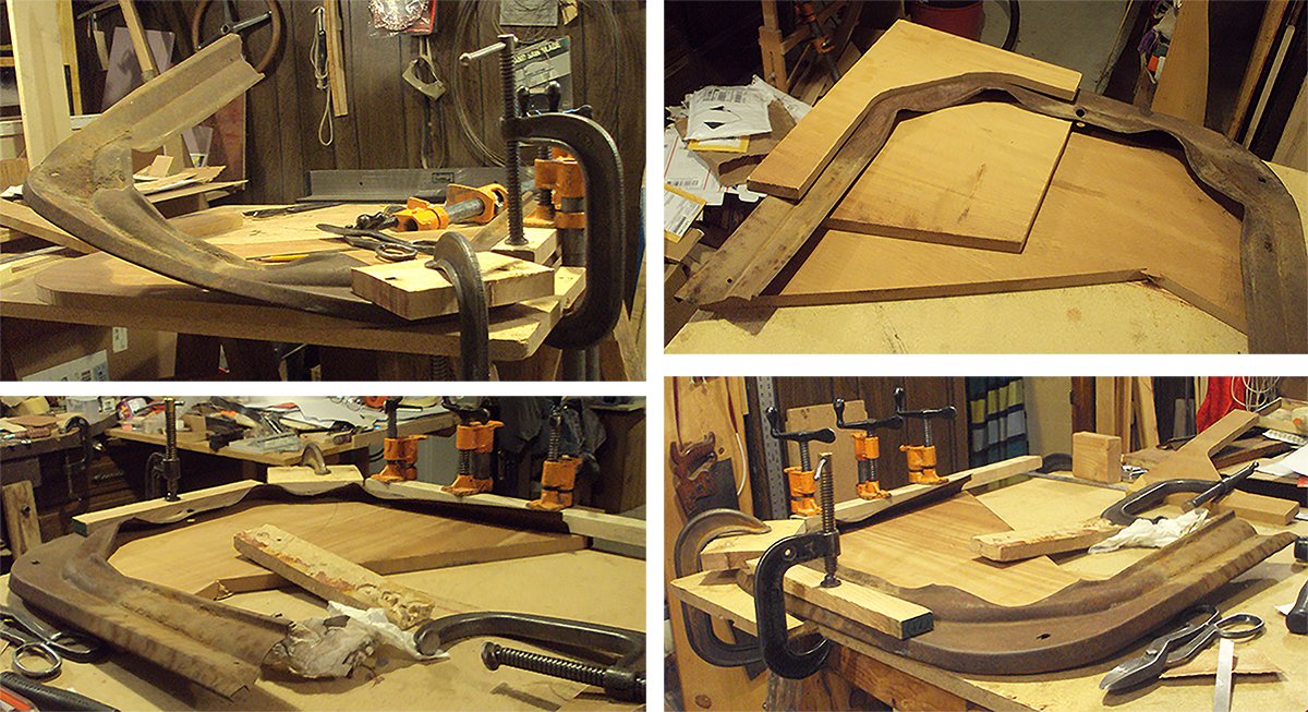 The Coupe body for sale with all the hard-to-find items and want-ads for mouldings reminded me of the piece I made for my '25 Tudor a dozen years ago. I had searched many years for a door before I found one and it had no window mouldings. I made one using these maple forms and spliced the "pull" from a coupe into it. I wish I had taken pictures then. These forms are still with me. I'm sure someday I will need the one I cut up.