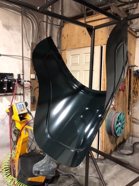 I also blasted, primed and painted the spare tire carrier that I got from George House. Thanks again, George.
