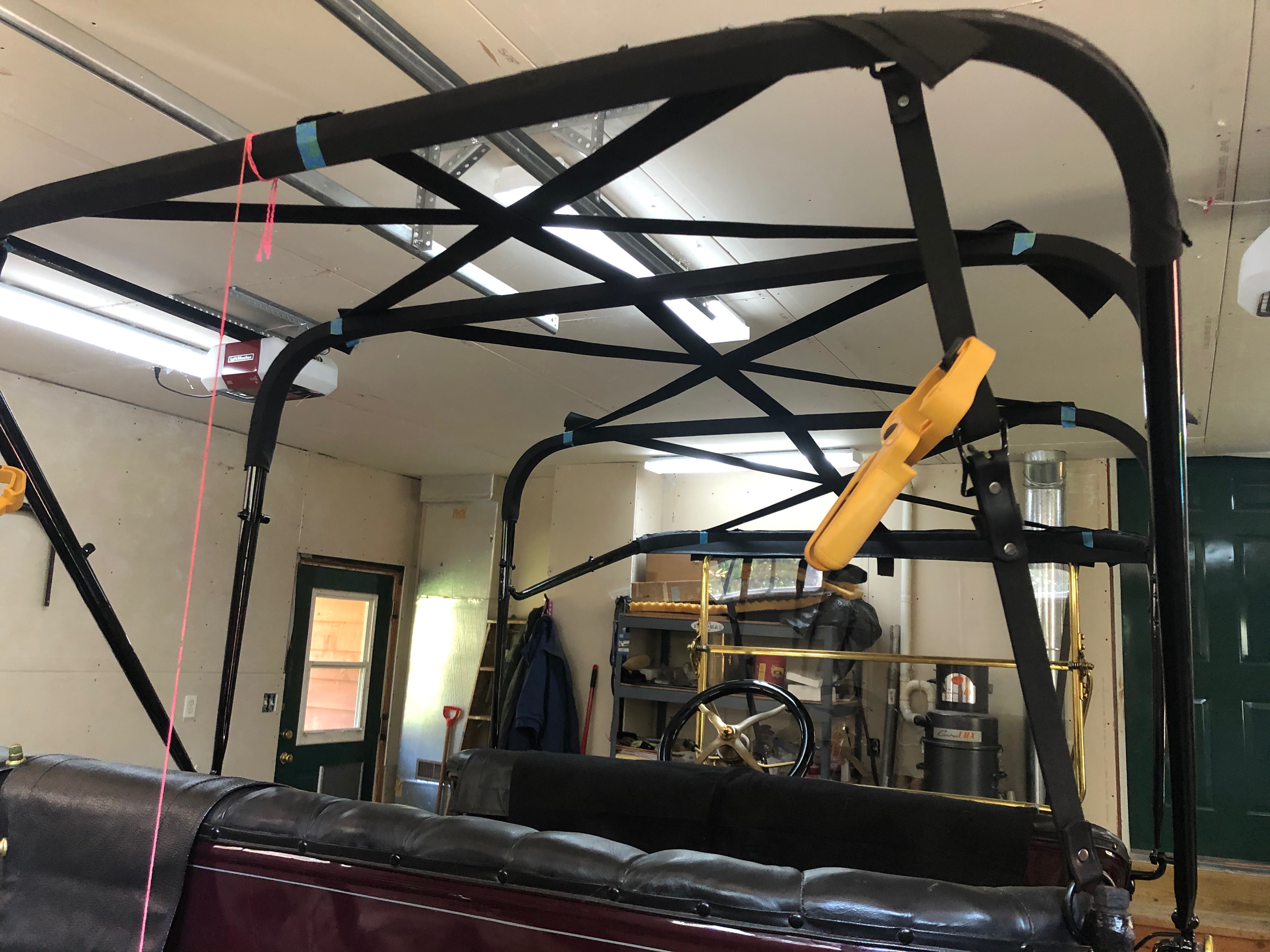 I had a picture of Keiths top so I made mine look the same. Installed the loops and the original style webbing and the winshield seal. Today I have it sitting in the sun with the top material laying on it to try to relax some fold marks. Thanks for the bump, Art