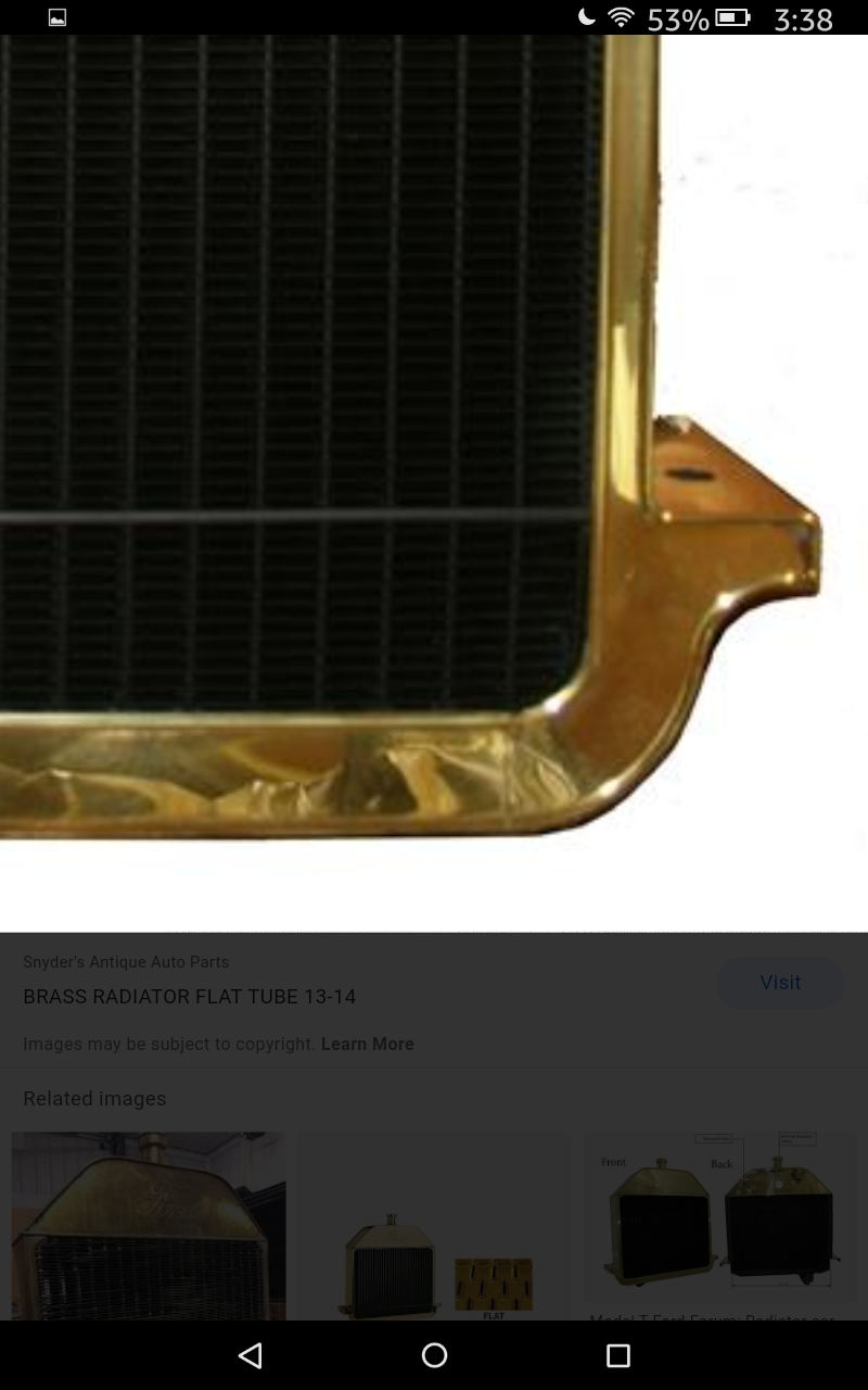Agreed, I did read that. Was looking for someone else to corroborate the assertion that the thinner ones are FORD replacement units. This is a fascinating point of reference for brass radiators to me.TRDxB2 wrote: ↑Mon Oct 05, 2020 9:08 pmThis is what he said "Both styles of radiators are genuine Ford. The ones with the short skirt are replacement radiators made by Ford after the 1916 model year, and discontinued in 1925. ...... Brassworks, ..... they are doing that skirt correctly." So Brassworks is making a reproduction of the original radiator and not a reproduction of the replacements that Ford made