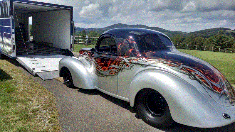 This trip will be with the Ameri-Lite aluminum single car enclosed trailer. This is an actual vehicle trailer with a beaver-tail rear & a Drive In Rear Door so the vehicle (no matter how low) can be either winched in or driven in depending on the situation. Since I am a car guy, know how to drive them all & use equipment meant to transport vehicles, you will NEVER have to hire a rollback to load a car in my trailer.