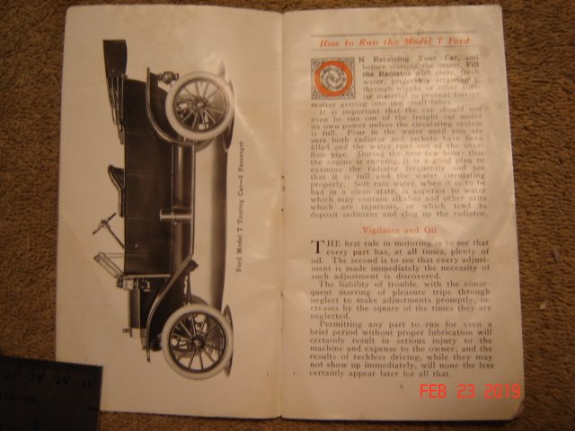 As Bill stated, the 1913 instruction book is a bit light on, May 13 and Sept 13 are 26 pages each. I have a 1914 Canadian Ford Manual which is 96 pages.