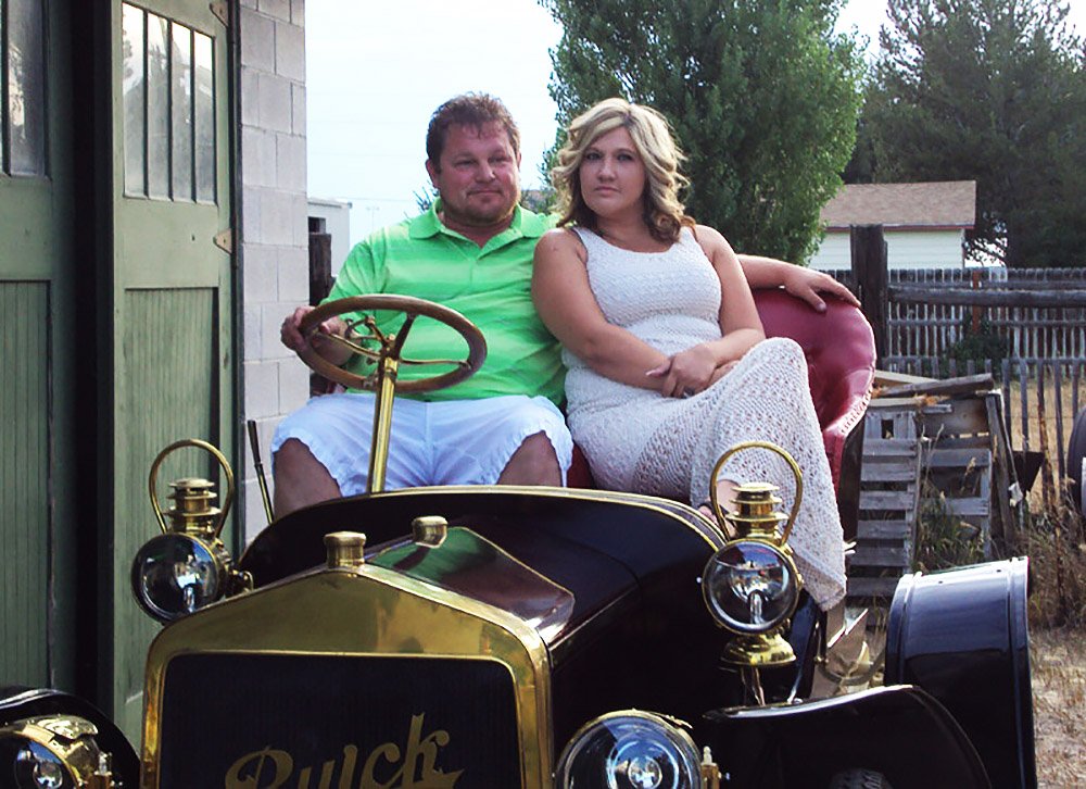 I had sunk to spending days in the shop doorway wet-sanding rust from T parts. Sitting on a cinderblock with a bucket at my feet and letting my mind wander into oblivion. Reality becomes far away when suddenly a shadow blocks out the sunshine. I looked up and there standing before me was an exotic angel. My heart started pounding at something far greater than the task at hand. She explained that her boyfriend had noticed the old rusty cars in the yard from roof work nearby and asked if they could have wedding photos taken around them. Reality began to take hold. We made arrangements and they were even more pleased when they arrived and I furnished the nicer ones from the garage for their photographs.
