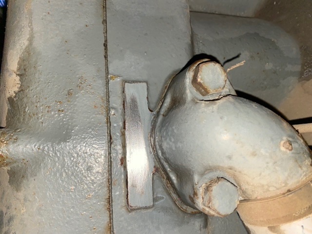The engine serial number should be here. The other photo suggests it may be filled with paint. Maybe some coarse sandpaper will make it readable.