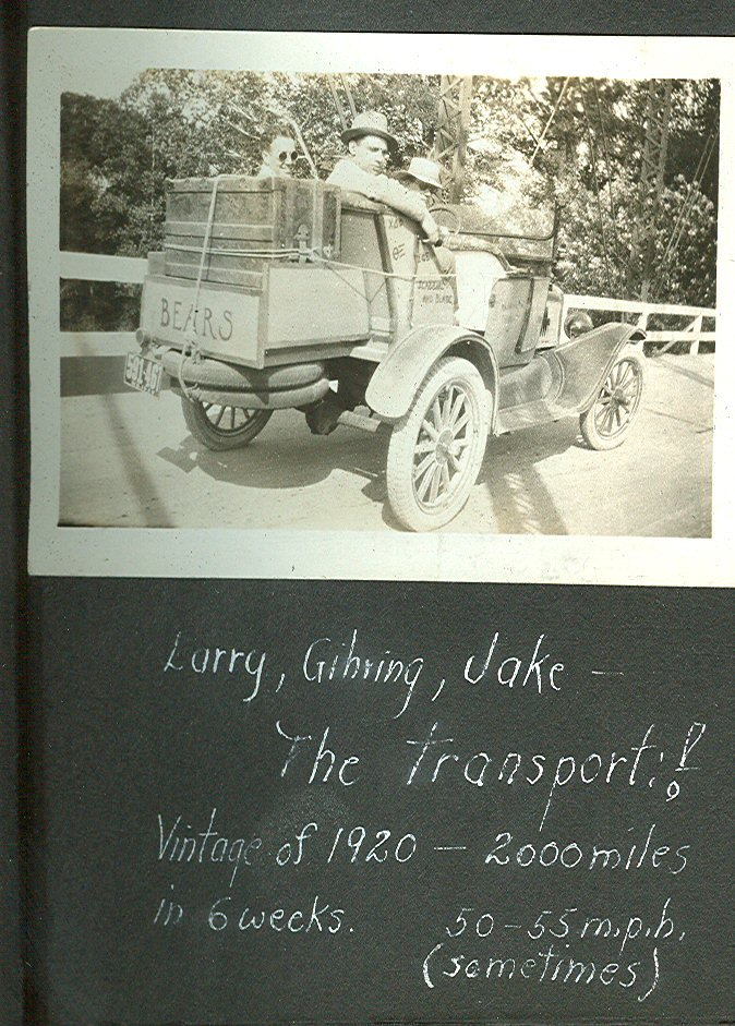 In 1929, my dad was a student at Washington University in St. Louis and was in the ROTC unit. He and three of his friends went to Camp Knox in Kentucky for their ROTC Summer Camp. They pooled their money and bought a 1920 Model T, which they modified to carry them and their baggage. These pictures went into an album when they got back, and I still have it. His captions speak for themselves.