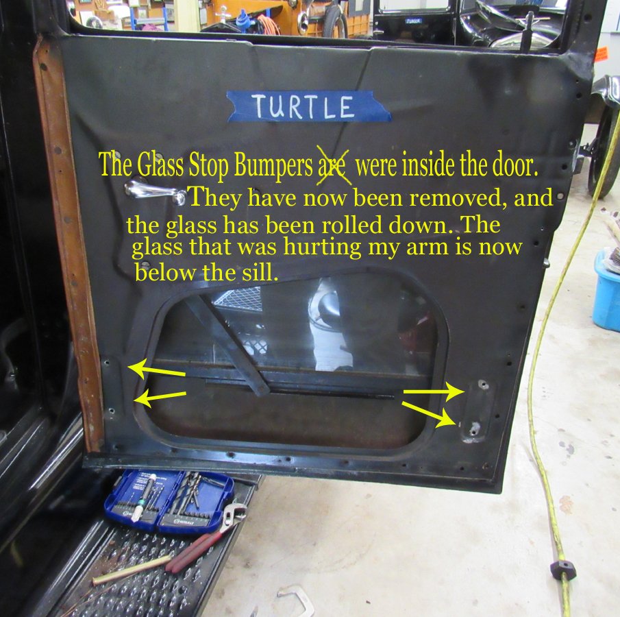 Today has been a fun day, trying to figure out why the windows completely roll down on one ’27 Tudor, yet the other Tudor (same year) the window lacks as much as an inch from disappearing. One inch is all it took. Tomorrow, I'll re-attach the Stop Bumpers- one inch lower that they were this morning.