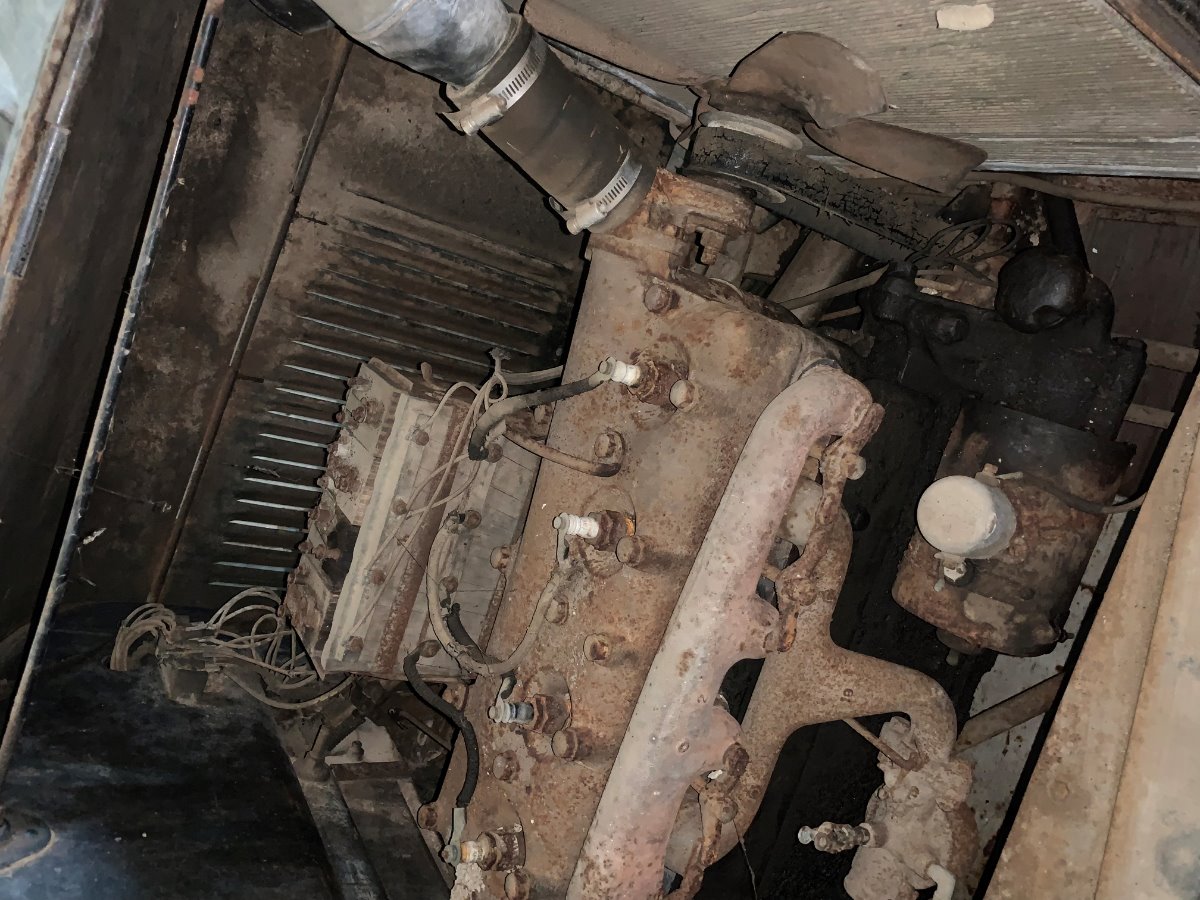 I flipped the front axle around today. It needs to be rebuilt. I will address that later. Erik had installed a coil box with my rebuilt coils, cleaned all the battery connections and changed the oil. The gas tank looks to be very clean. It was nice and dry with no scale or rust!! I put in a refurbished sediment valve, a new fan belt on and some hoses. I cleaned out all of the debris in the cab and bed. Installed a rebuilt carburetor, and different manifolds. I need to get a battery and an exhaust pipe. Then I can hot wire it and try to start it.