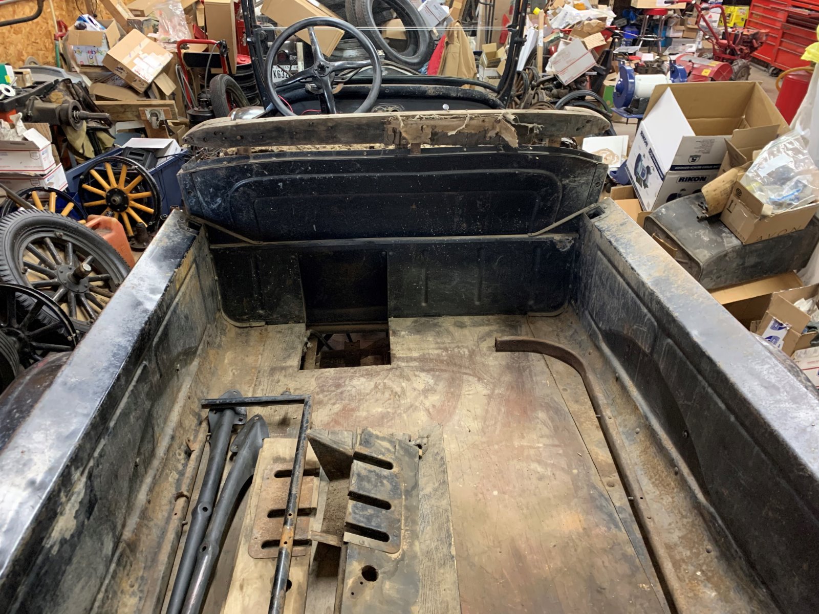 Somewhere along the line (presumably ‘27 model year), the metal pan was omitted from the top of the sub rails, and attached to the trunk floor of the roadsters. I can only assume that the pickups carried this same change