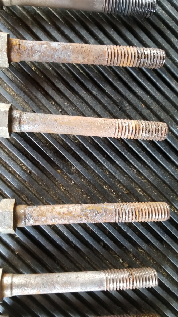 The head bolts are fine, clean up with a wire brush. Bottom tap all the bolt holes.