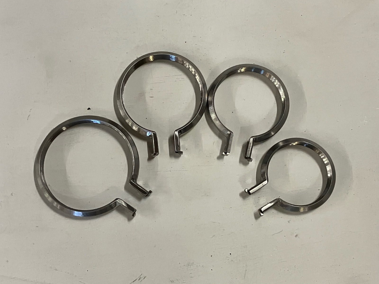 V band clamps are machined from solid stainless steel and are ready to install, complete with stainless steel hardware. $90 ea.