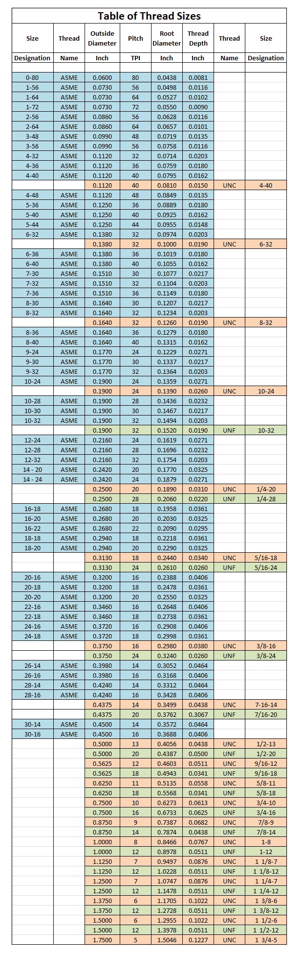 Where the Imperial system differs is that the pitch is NOT a constant in both the Fine and the Coarse series (which is opposite of metric where the thread pitches stay a constant pitch for each of the series)