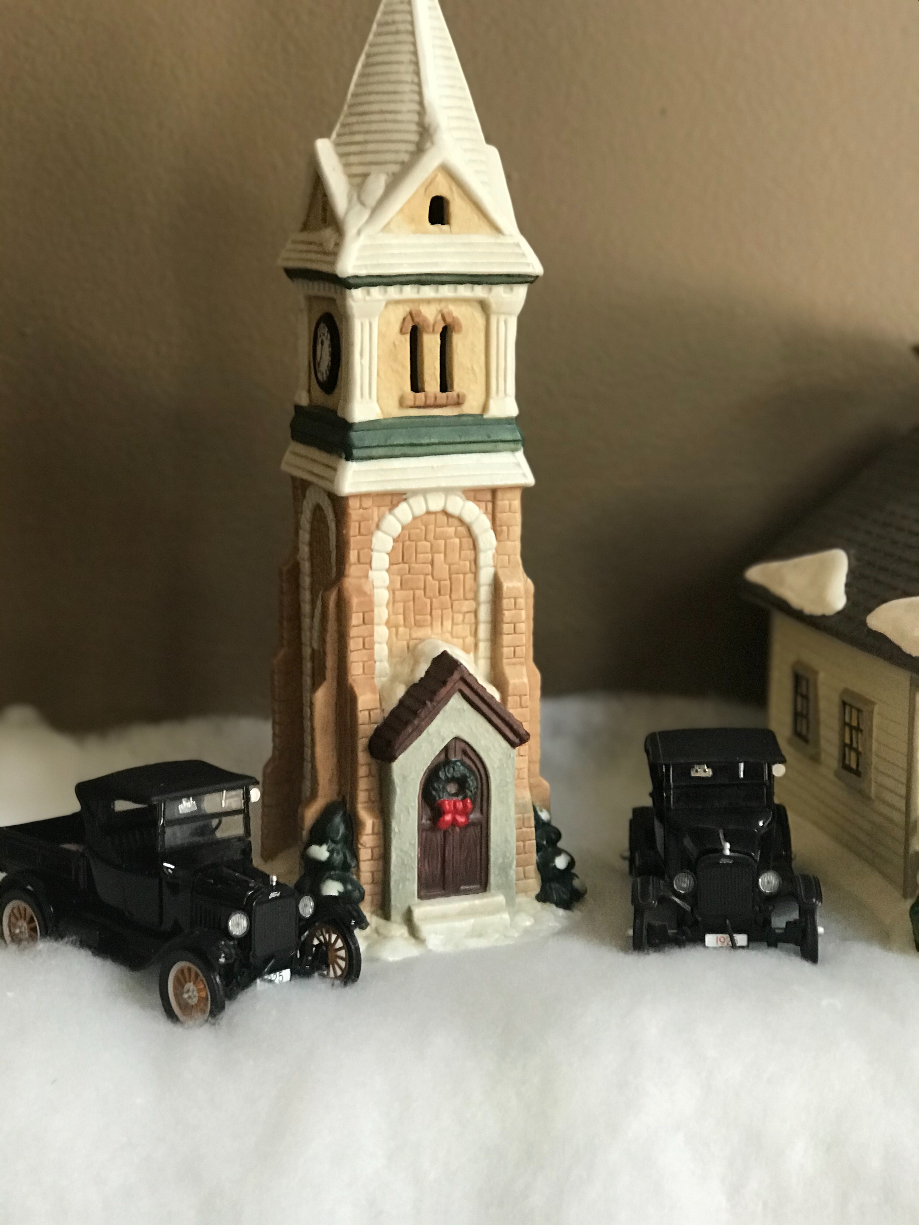 My wife and daughter decorated the house for Christmas, yes we still say Merry Christmas at my house, and my daughter created this little village for me. Two Ts and an Olds.