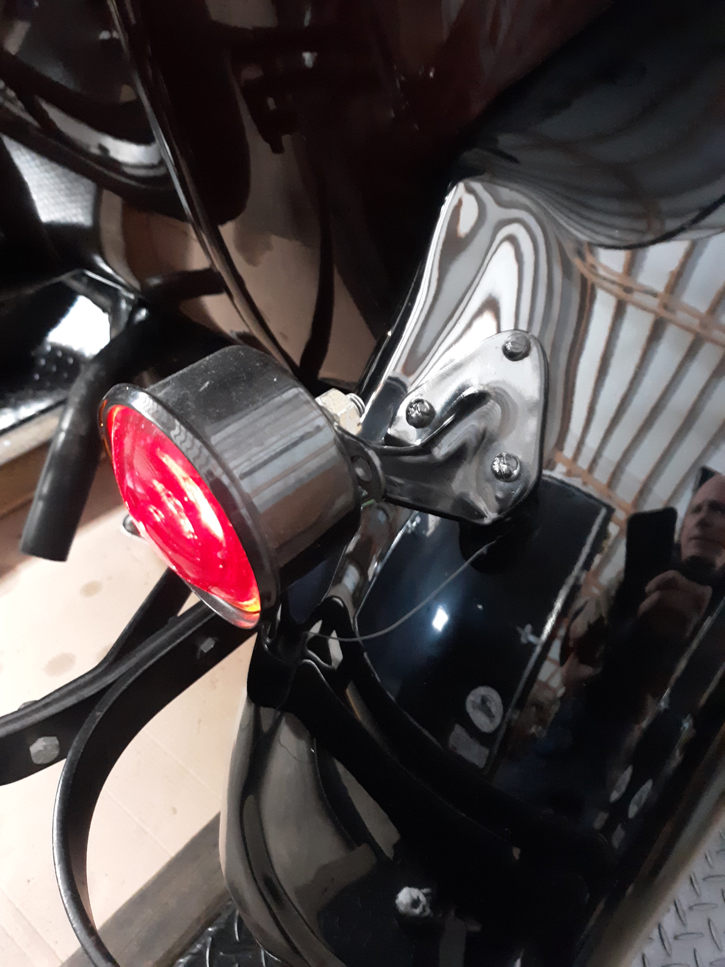 Good advice John, altho I elected to use smallish fender washers instead. Finally had to head out to the barn, so heres a pic of said right side lamp with the tail light on. You wouldn't believe how bright the brake light is!