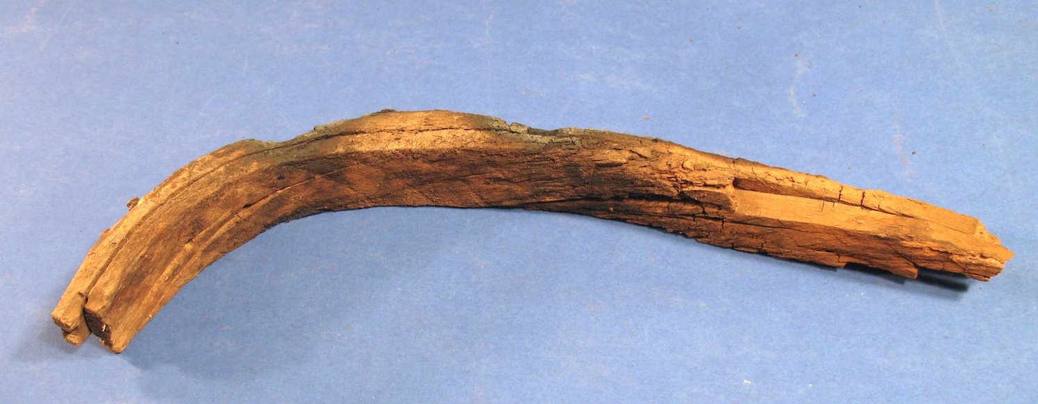 Original bow and the curved wood pieces removed from top iron. The curved side wood pieces stack on each other and fill the rectangular top iron cavity.