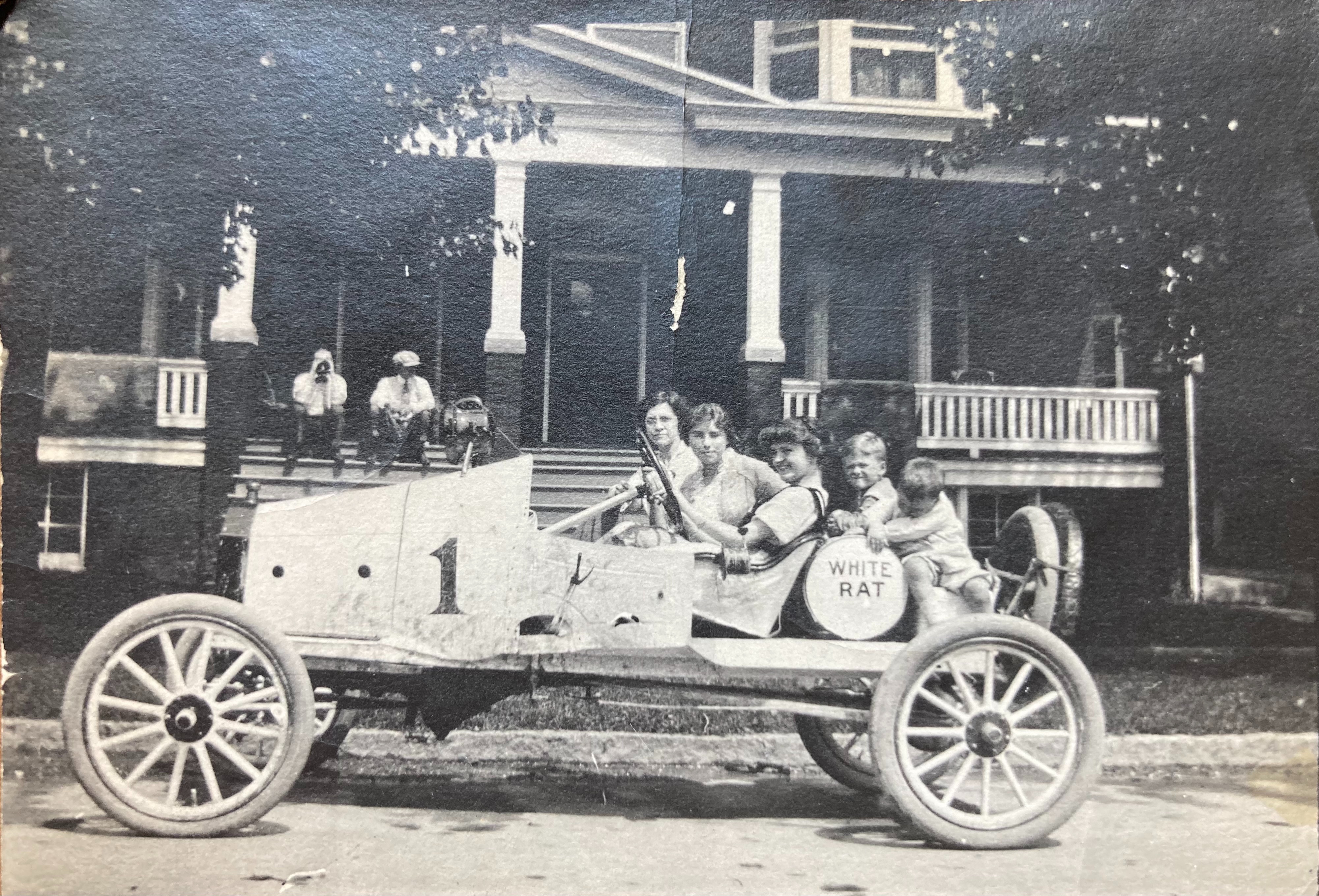 It's certainly a serious attempt at a speed vehicle in an era where Stutz Bearcats and Mercer Racabouts were the rage. Taking fun photos with the wife and kids is a wise move to have them buy in on the project.