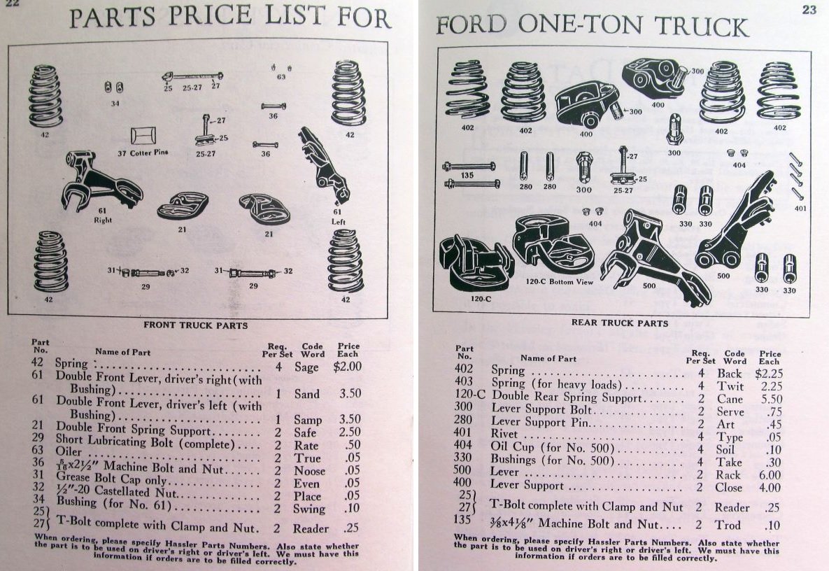 However the New Hassler, 1924 ‘Pancake’ style uses the same flattened coil spring for all body types, and they use new front brackets that don’t need the perches to be removed or transposed, but only each spun in its position to turn the shackle hole outboard. So they mount easy.
