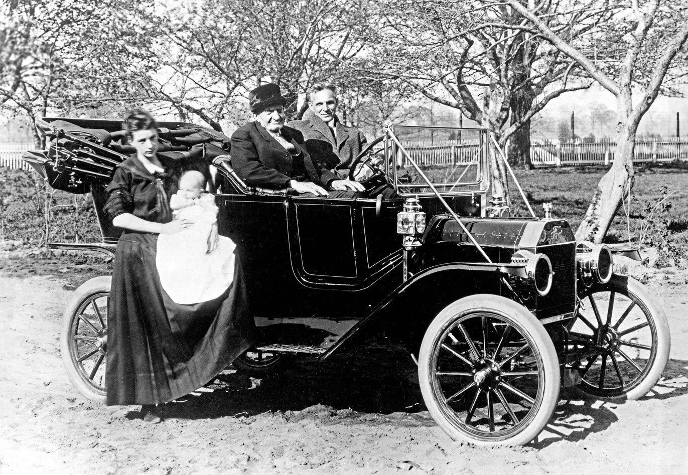 I'm not trying to hijack this thread but I'd like to know more about the picture of the car with Henry Ford at the wheel. I have never seen that picture before. Specifically, who are the other two people? Who is the passenger and who is the young woman with the baby?