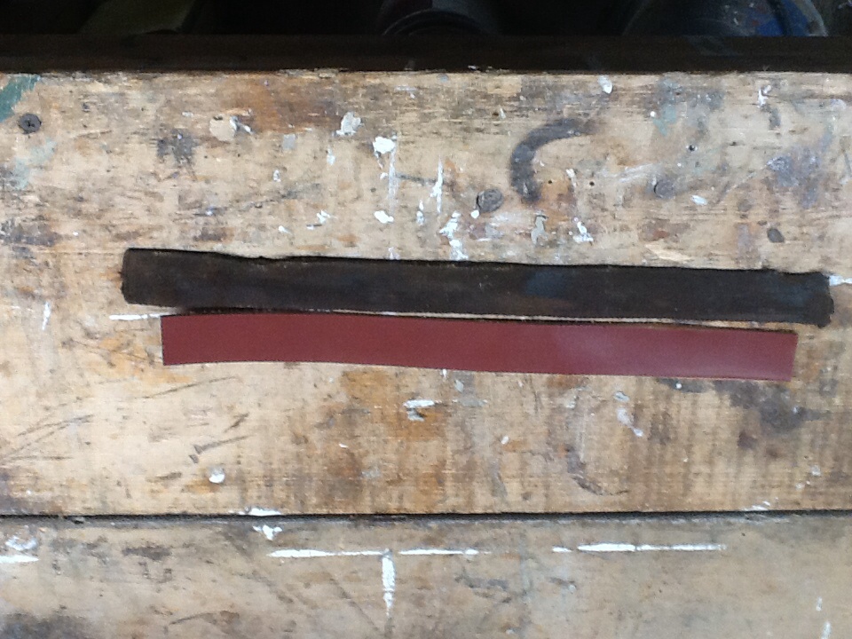 I'm guessing "not" is missing from your post, as the photo shows leather strips shorter than material I presume is the cotton webbing your dad put in ?