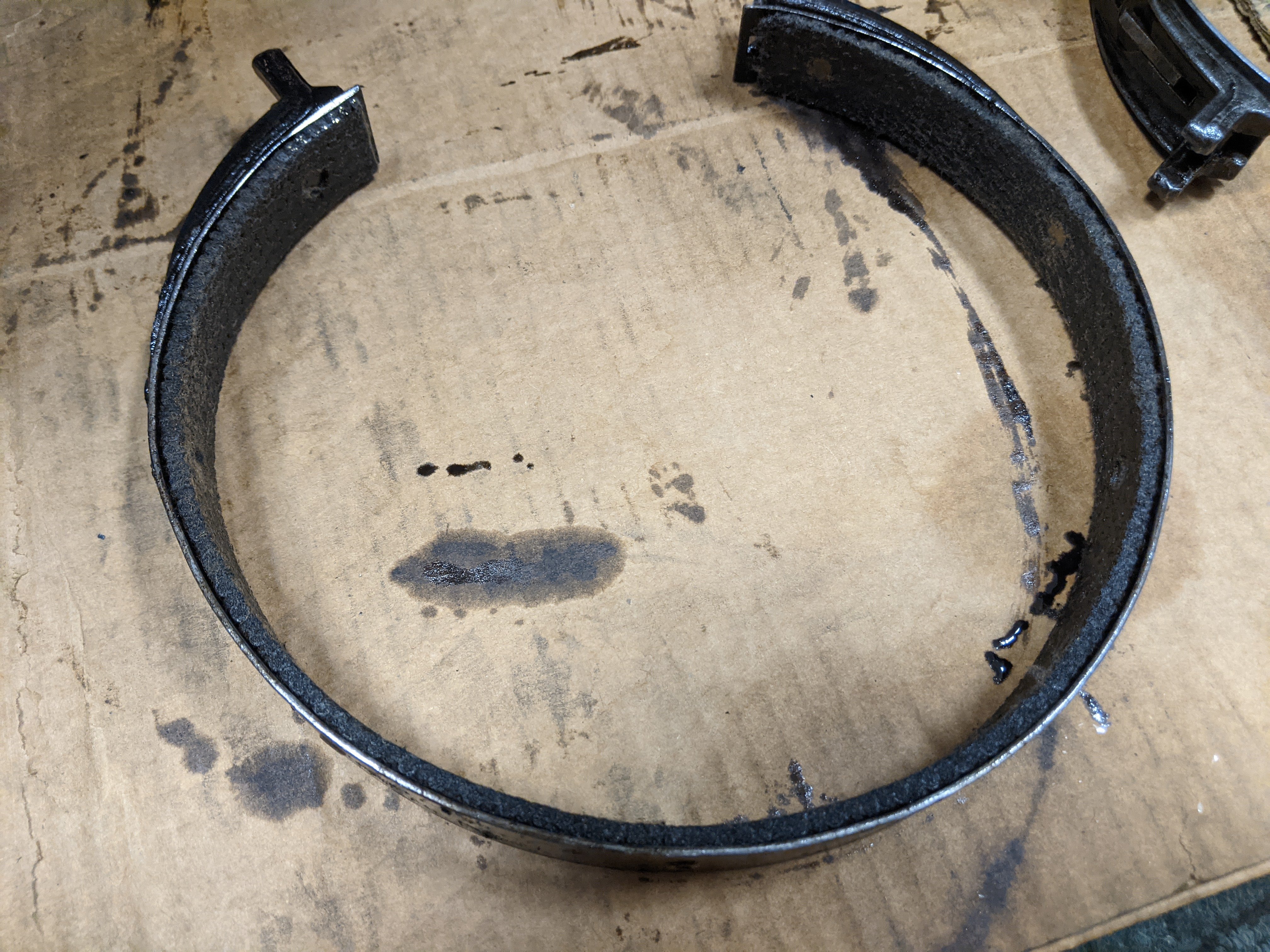 Band lining torn up indicates a cracked or broken drum, so you will probably need to replace at least one of those. An original drum may be OK for a car that isn't driven much, but if you intend to use the car a lot it's probably a good investment to get one of Dave Nolting's new drums. Many original hundred-year-old drums have cracks, sometimes unseen, that can only get worse until the drum goes to pieces. VOE