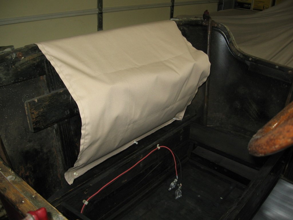 Thanks! I finished the seat back yesterday, then fetched the top back up from the basement and installed it. I really like how the top's rear curtain has fittings that slide into tabs on the aluminum brackets on the seat rail. Next I need to start on the seat cushion.