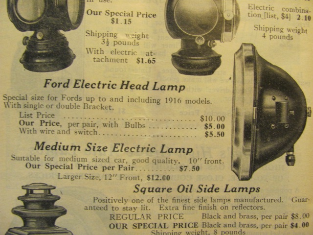The example photo, if you zoom in on the lamps shows the rims with flat top edge and slight bevel side edges, very much like these accessory fork lamps. My guess is that well preserved Ford has accessory elec. fork lamps.