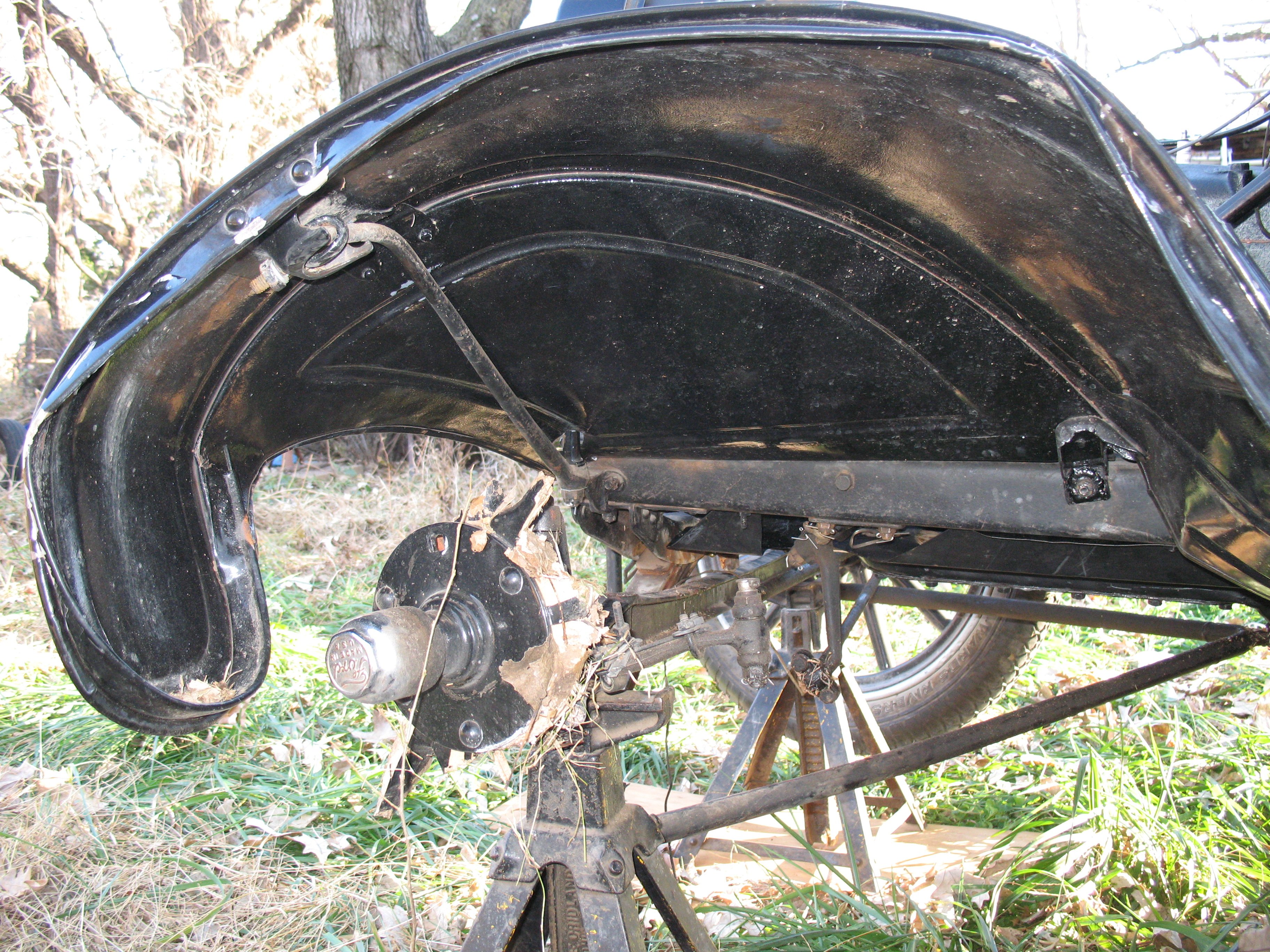 Is the wishbone holding the axle firmly with approximately 5 1/2 degrees of positive caster? (That was explained in more detail by Norman above -- Thanks Norman). Originally a 1909 to 1919ish would have the above the axle wishbone but sometimes they are replaced with a below the axle wishbone and/or braces below the axle are added to the above the axle wishbone.