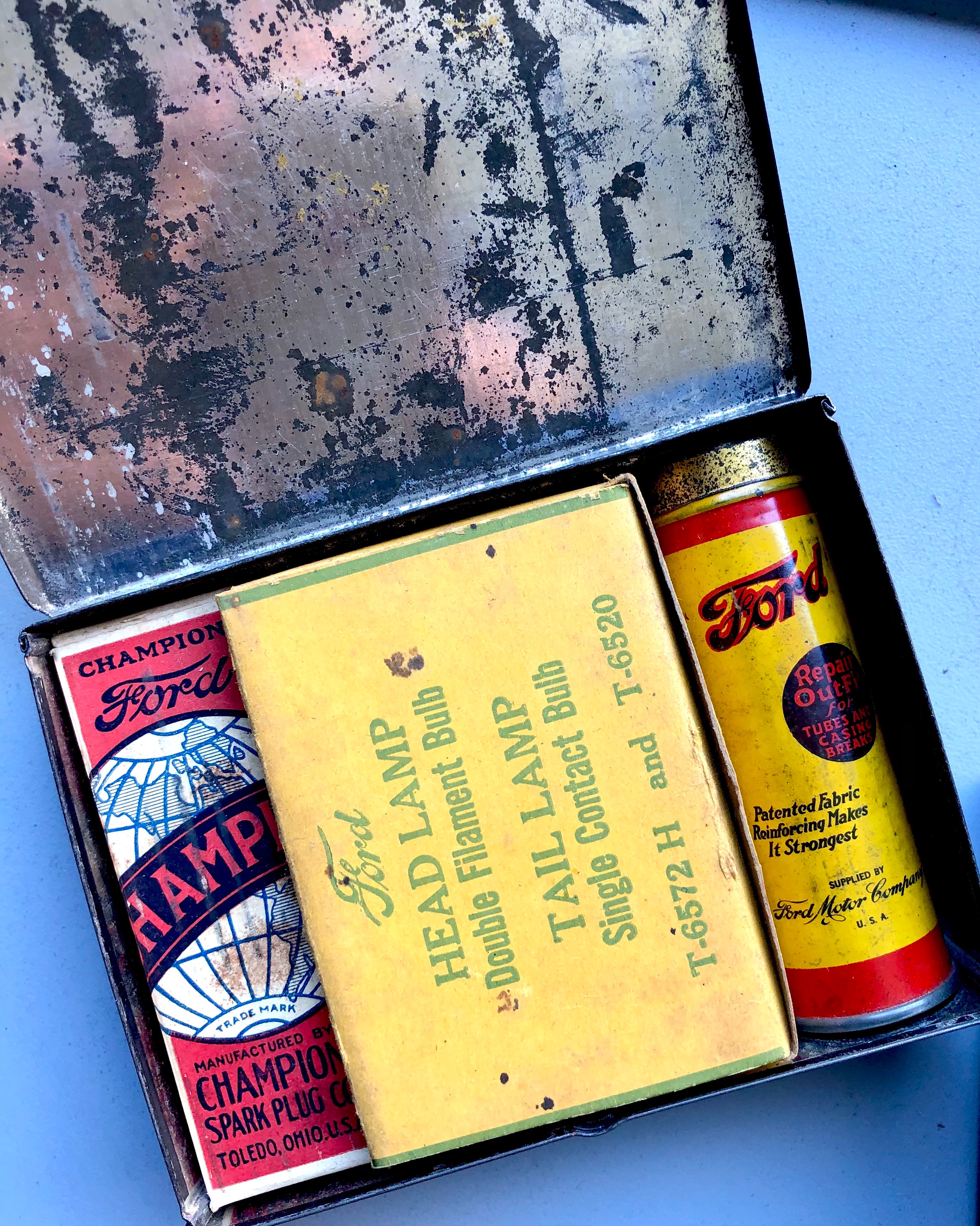 Got one of the Ford Emergency Kits this spring. Just has some shelf wear, but the insides are NOS!