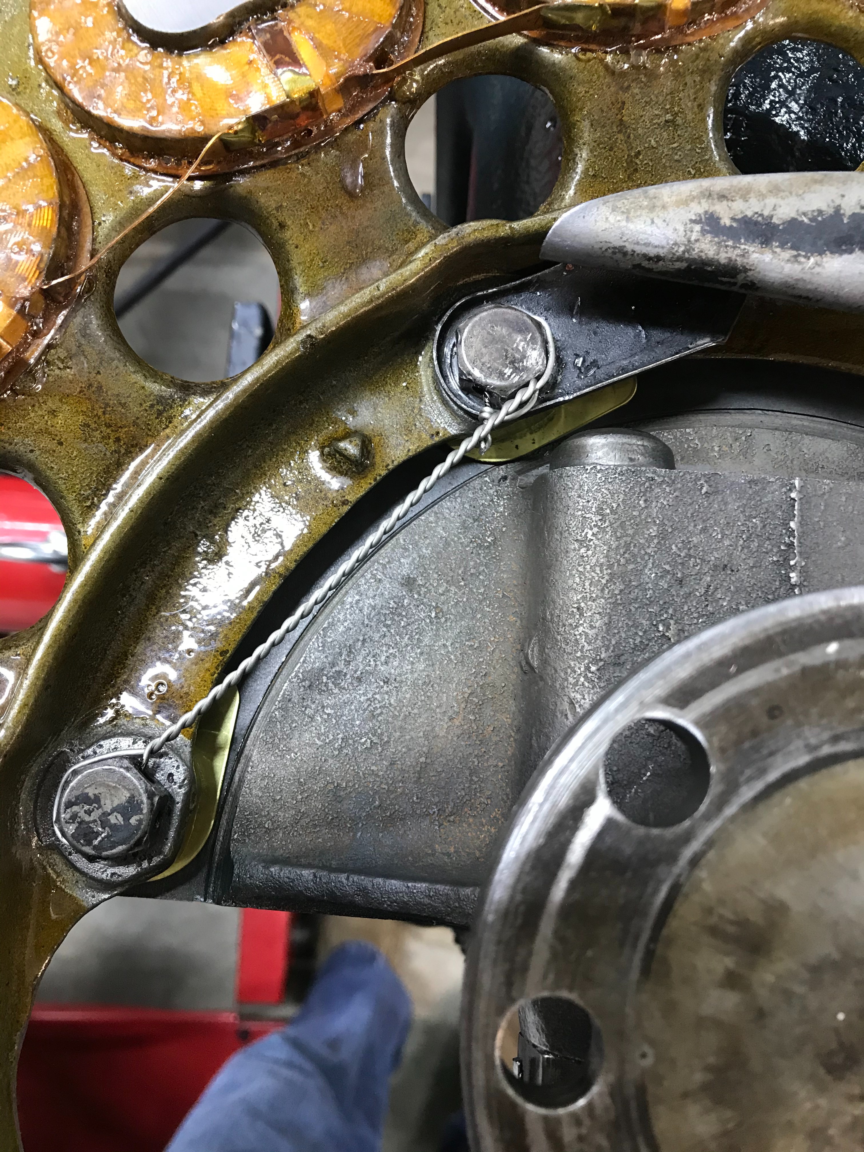 A bit of progress. My first safety wire job. Now for the Flywheel bolts!!