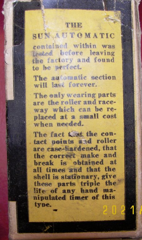 Here we go. I will post one to start. Sun Automatic. The big idea here is to hold the timer in position for starting and the advance weights automatically adjusting the timing to get it right.