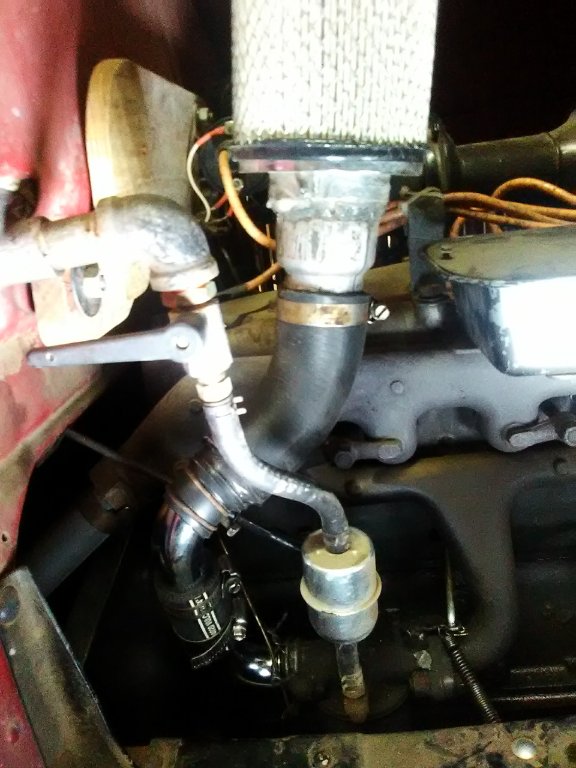 My "new to me" 1912 Warren Speedster has a Model A manifold and carburator. Would any of you have a suggestion on where I might find an air cleaner that would fit in these tight quarters?