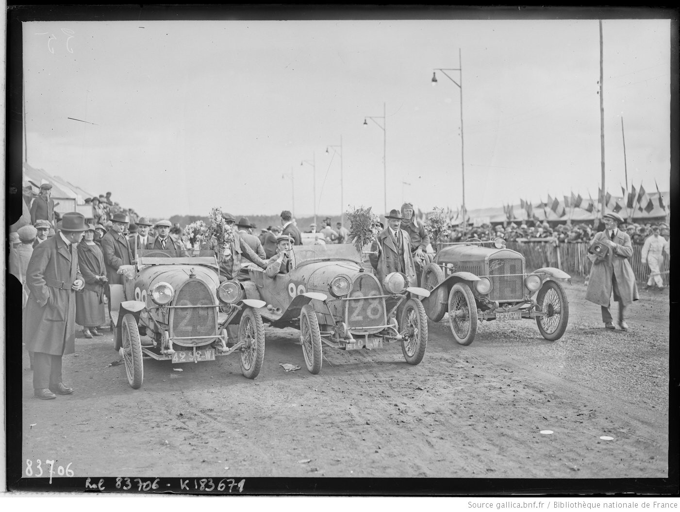 Beside two Bugatti's at the 1923 Twenty-Four Hour Le Mans: