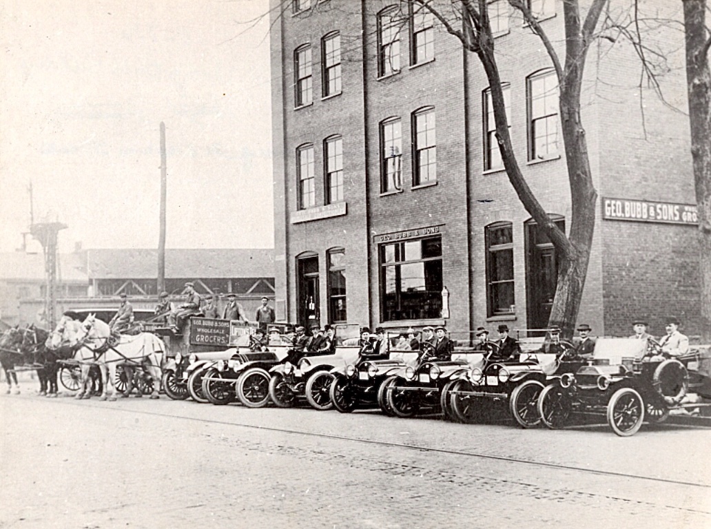 The last (number 20) car appears to be 1919 or 1920 with its demountable wheels and clear headlamp lenses. What I find interesting is the unusual after-market front fender lights.