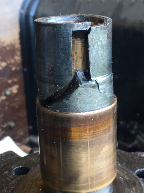 That fractured driven gear shaft is something that occurs just about only on the wide drum of the ‘26-‘27 engines and is a result of slight alignment issues between the crank and fourth main, combined with the fact that the ‘26-‘27 powerplant assembly is much more rigid due to the top of the hogshead being bolted to the back of the block. In other words, it was caused by an alignment issue. HOWEVER, the alignment issue may not have been in that engine. It could have been at any point in that brake drum/driven gear sleeve’s past history. It is important to carefully check the driven gear sleeves of ‘26-‘27 large brake drums before re-use. Pay particular attention to the inside bore. Voids in the inside of the forging are not uncommon and are a particular weak point.