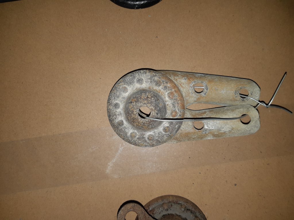 I don't offhand have any really good photos of the hinges themselves. As proper assembled units, they are easy to tell apart. The later offset/uneven fold style have one short and one long arm each side. The even fold, all the arms are short both sides. While some of the smaller pieces, springs, bolts etc, are the same or at least close enough to swap from one type to another, the four main pieces are each unique. There is a right upper, and a right lower, a left upper, and a left lower. All different and not interchangeable, at least not without major modification.