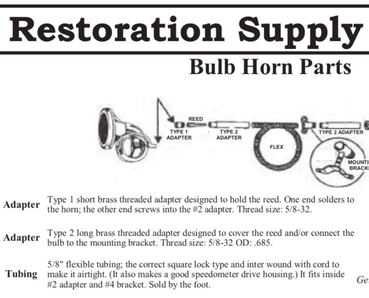 Got some tubing from Restoration Supply in S. Cal a few years ago. Worked fine on my faux ‘09, stiff enough, cord wrapped to make it air tight for horn.