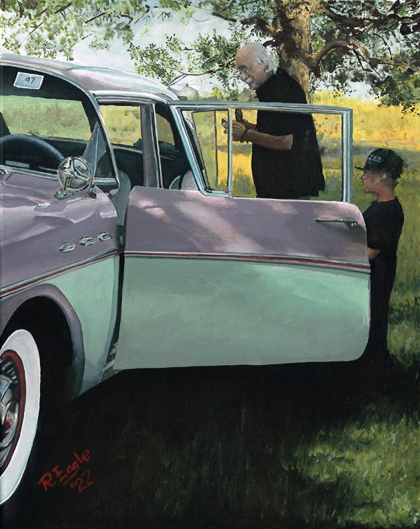 It's been a good Winter for painting. Joy remembered a car with a ship on the dashboard. That allowed me to by a junker Plymouth for a time.