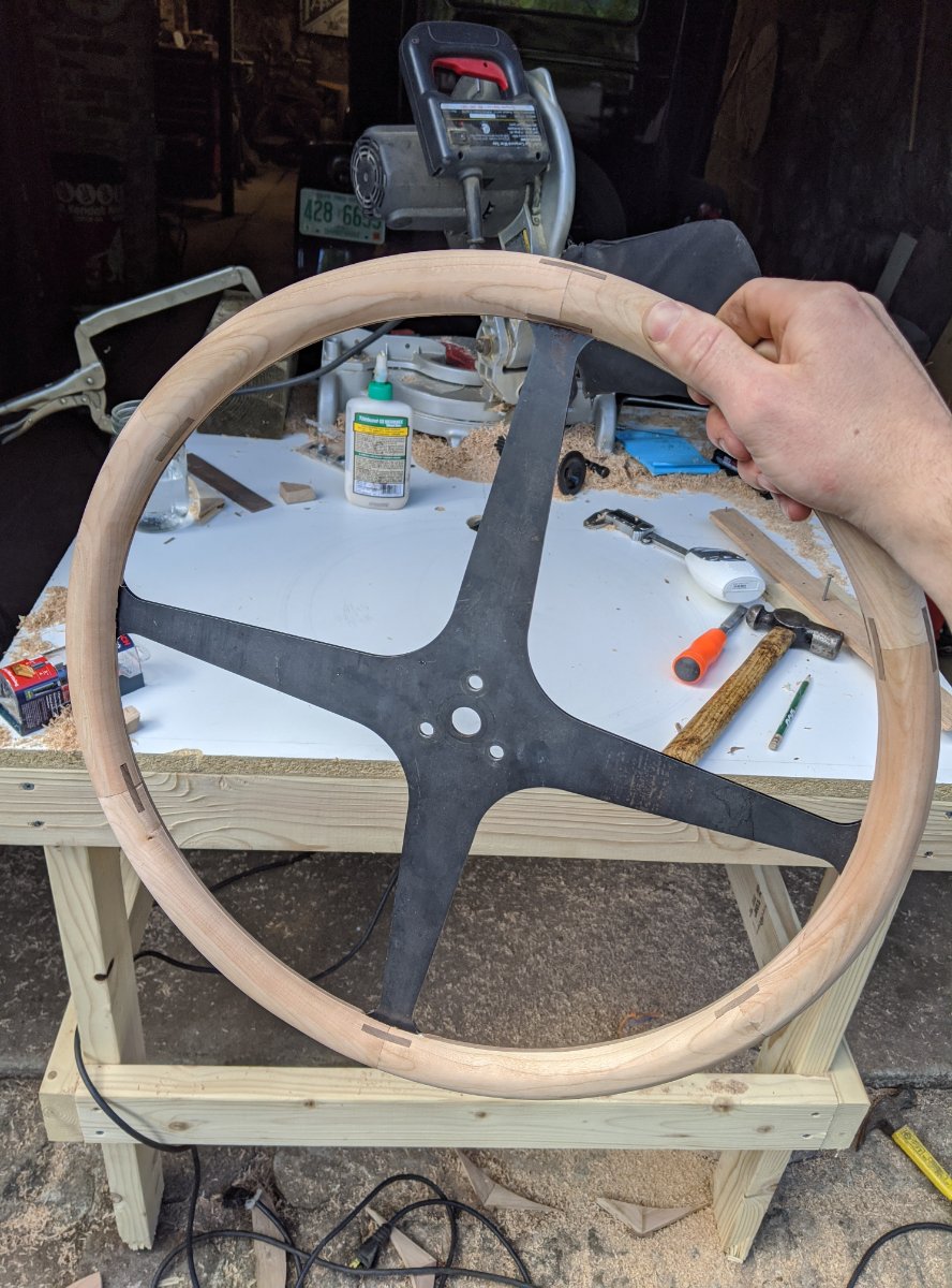 Progress has been slow lately. Tackling much needed home maintenance. I did however have some time to tackle a steering wheel project. I had a cracking issue with the Neville so unfortunately I think it's unusable. Therefore I bought another wheel and decided to make my own wood rim. I decided on cherry with a walnut 1/8" laminate down the center. First I built myself a router table out of some melamine as it's pretty flat and smooth.