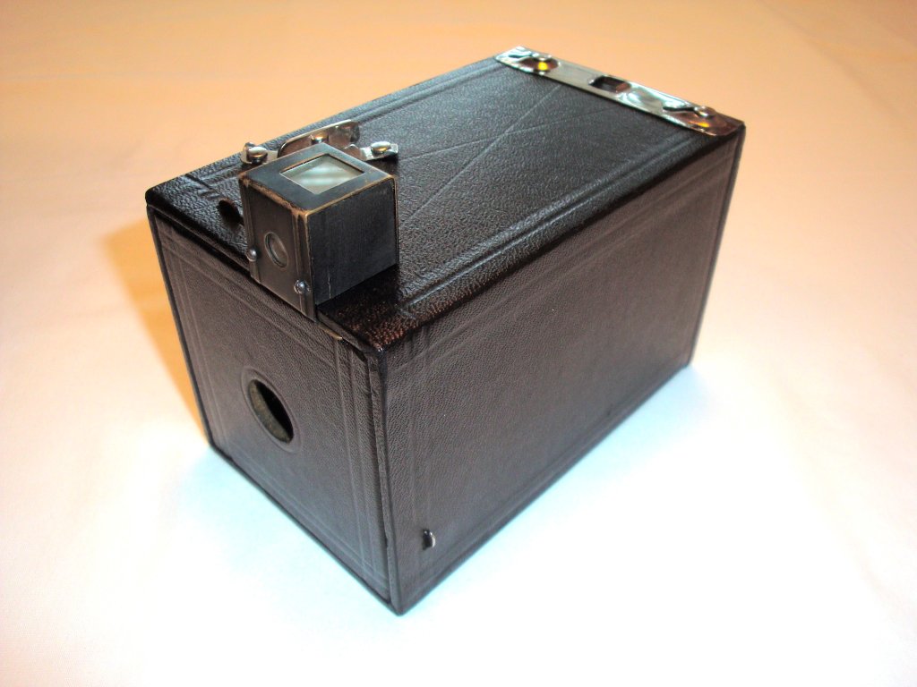 That was the original Kodak camera of 1888, it came preloaded with a 100 exposure film roll. You sent the whole camera back to Eastman for processing. http://camera-wiki.org/wiki/Kodak_Camera The cool thing about those was that the photographs are round. The Brownie came out in 1900, and the no. 2 Brownies were made from 1901 until I think about 1932. Box cameras in bewildering variations were made until at least the late 1950s.