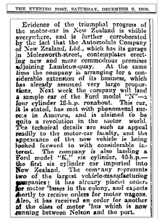 Want to find a way to fire me up? That did it! My first question would be "So, how did the other 1906 vintage racers do at the races? The answer is obvious, there WERE NO OTHER EARLY CARS IN THESE RACES! One of two Ford dealers for the entire region of Auckland thought enough of a 1906 Ford six cylinder racer to enter it in the first New Zealand Cup race.
