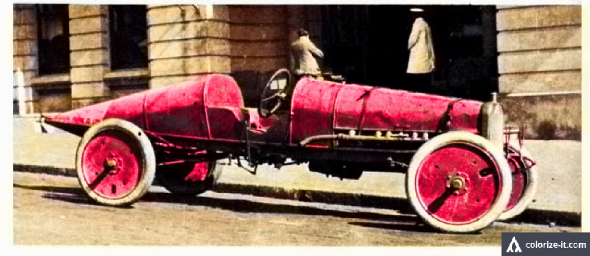 Below is a photo of the Ford six racer, possibly in Marton or Auckland. It was misidentified as a Knight speedster but is clearly our Model K with speedster body. I colorized the photo to give an idea what it may have looked like in the day: