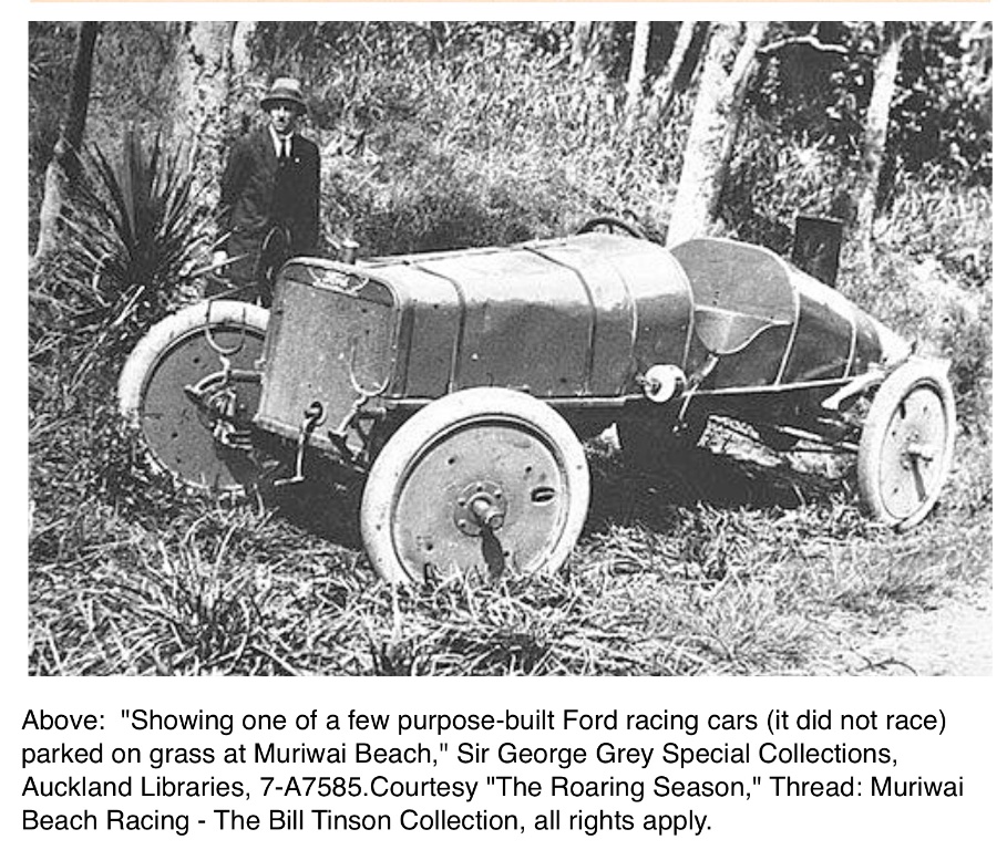 The Muriwai Beach races began in 1921 and ran for several years. The first New Zealand Cup race was held in 1921, as well as several other race events. Meanwhile, George A. Haydon, one of the two representatives for Ford in the Auckland area, had purchased the six cylinder Ford racer. Haydon, along with his competing area Ford rep J. W. Andrew, also of Auckland.