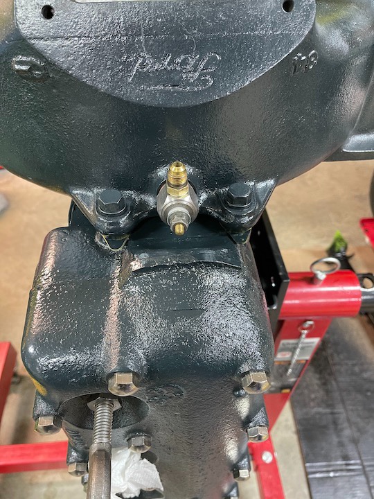 Next step Timing the engine. I'm starting off with a new timing rod from Lang's. With the lever all the way up I first made sure that it didn't hit anything. This was accomplished by moving other things that were in the way NOT BENDING THE NEW ROD!! I had to take a wide punch and tap the outside oiler to move it. Made a few marks on it but it's now out of the way. I will also watch for the Radiator hose as well.