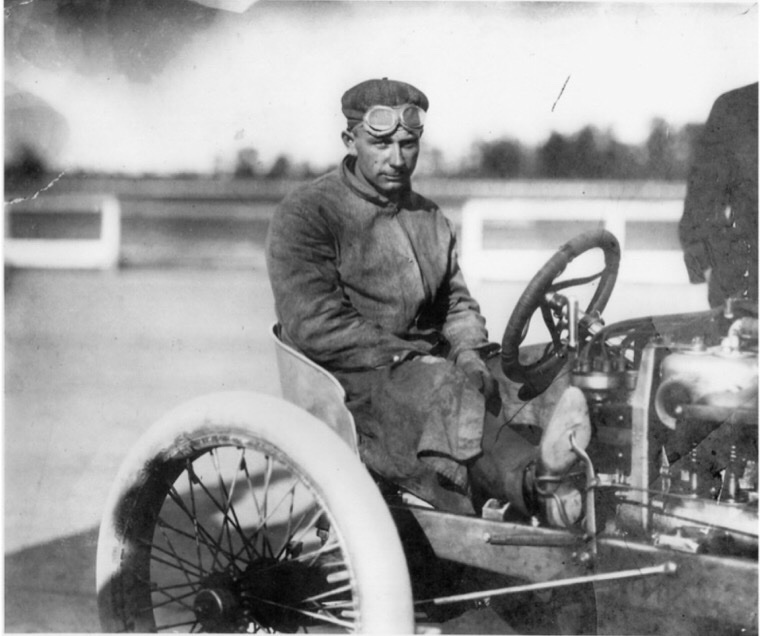 Frank Kulick seated on the 1100 cubic inch six cylinder racer. I suspect this photo was taken prior to Kulick attempting a world record on the Michigan State Fairground track in October, 1907, just before his near fatal accident: