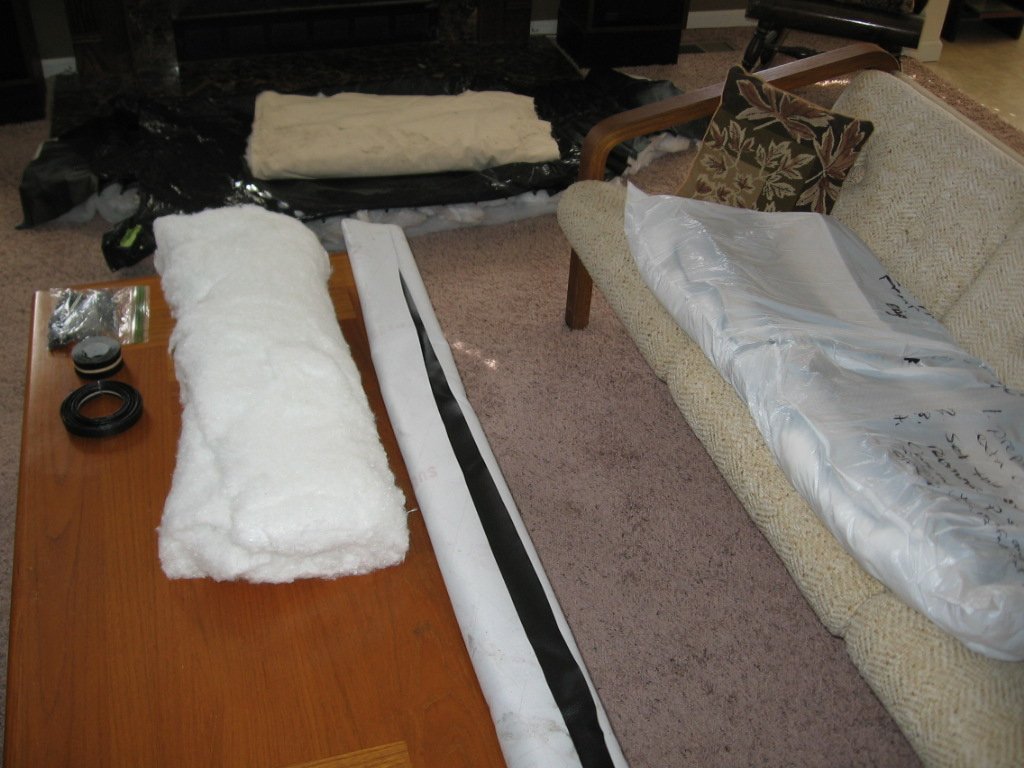 Here are some more pics of the seat cushion kit installation. All that remains to do now is to trim and hand-sew the bottom cover all the way around (it came sewn in the front). :)