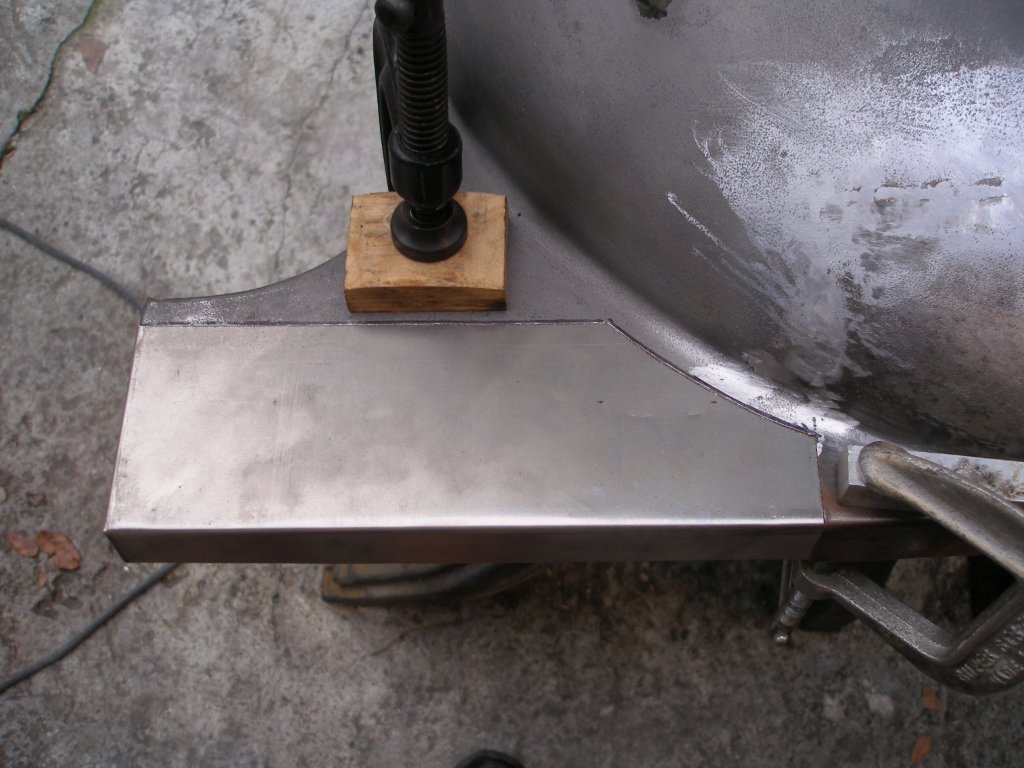 - The front cowl was made simple by cutting to shape then bending up each side by hand on a piece of carpet layed on the ground. When it was fitted into place I needed to do some shrinking and stretching with straight-pick and flat hammer + dolly.