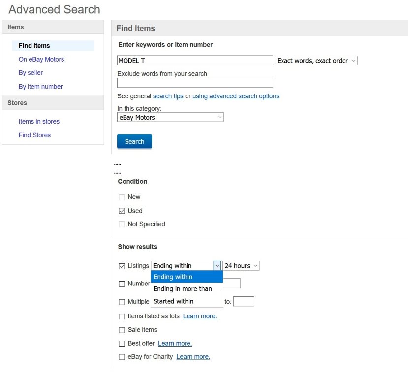 It is very easy to avoid their stuff, toys etc with the proper search criteria using the ADVANCED search feature.ModelTWoods wrote: ↑Wed Mar 17, 2021 11:21 amMac's - Eckler's is at it again on EBAY, dumping page after page of cataloged parts, littering up the site. I wish there was a way to convince EBAT to create a separate venue for vendors who don't sell ANY used original parts.