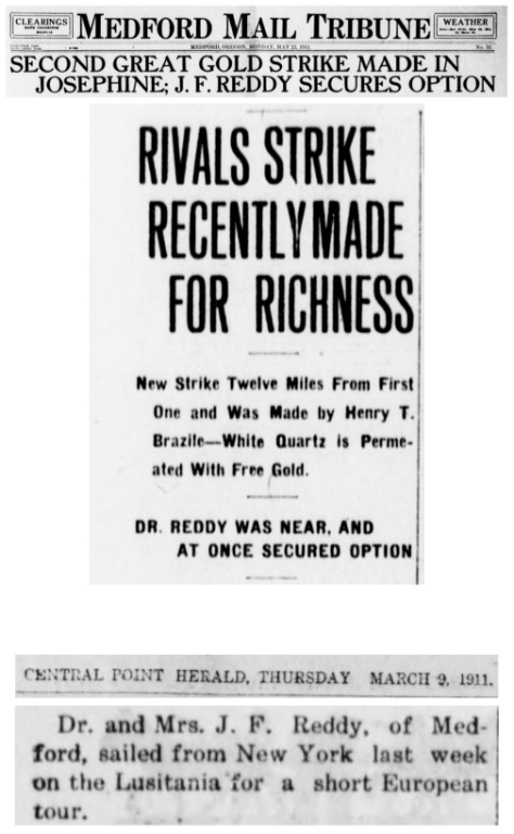 In January 1910, Dr. John F Reddy is acclaimed by a wealthy railroad builder to be the "biggest booster" of Medford. Dr. Reddy, who owns the Nash Hotel, is building a new hotel, as well as continuing to invest in mining and orchards: