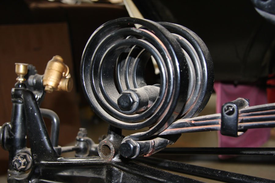 There were 8 coils total, 2 at each corner. A man named Jerry Linder (he was a chapter president for the HCCA) restored this car back in the 50s from a good original and toured in it extensively for years throughout California. He even did a couple early Pebble Beach tours. There were many historic tour badges mounted to the dash that I can post later if there is interest. I think the curly shocks must have made the car more comfortable for touring, but I never got a chance to drive it with them. It was a non-runner when it came to me. However, the suspension seemed to take weight very well when I would climb aboard to do repairs. Cheers, Bill
