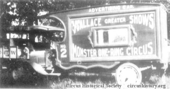 "The March 12th Billboard stated, in reference to the Wallace Greater Shows: "The No. 2 advance wagon is out of the paint shop. It is a 1 ˝ on truck with heavy carved mirrors. The show will use No. 1 and No. 2 trucks for the advance. Additions signed for the Big Show are Clark Boynton and his Canine Circus; Suzenette and Clark, cannonball juggling and contortion act. The Big Show will also feature a 6-brother act."